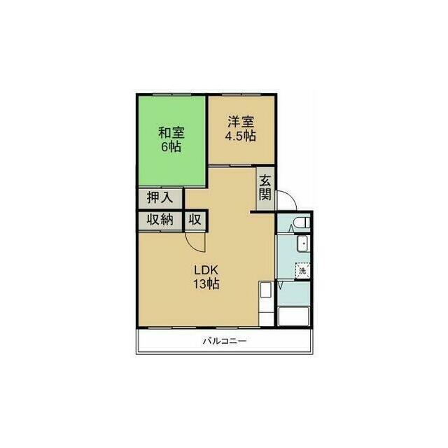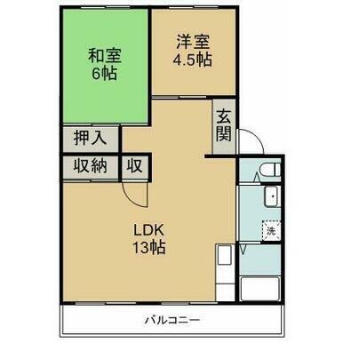 | 間取り | 2LDK(LDK13・和室6・洋室4.5) | 主要採光面 | 南 |