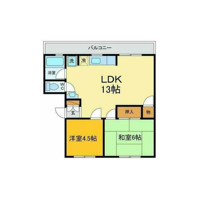 | 間取り | 2LDK(LDK13・和室6・洋室4.5) | 主要採光面 | 西 |