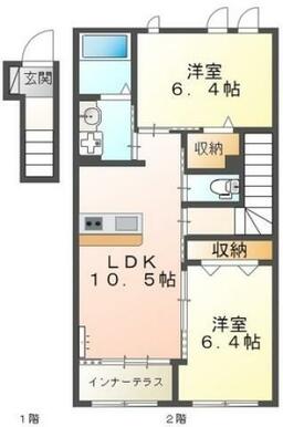| 間取り | 2LDK(LDK10.5・洋室6.4・洋室6.4) | 主要採光面 | 東 |