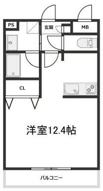 | 間取り | ワンルーム(洋室12.4) | 主要採光面 | 南 |