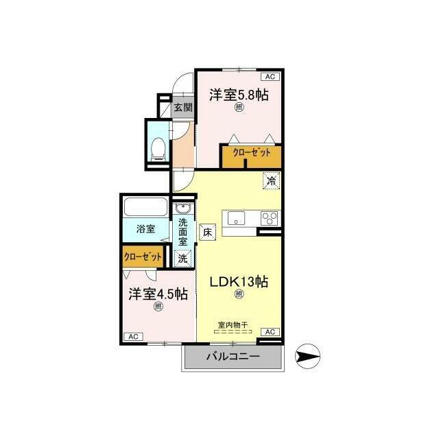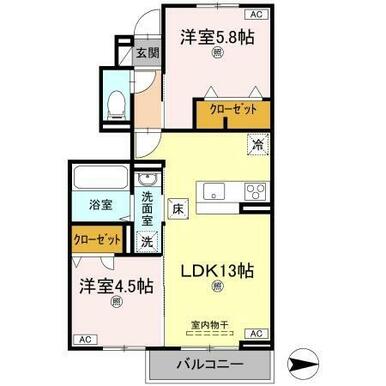 | 間取り | 2LDK(LDK13・洋室5.8・洋室4.5) | 主要採光面 | 東 |