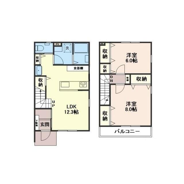 | 専有面積 | 66.25㎡ | 階建/階 | 2階建/1~2階 |