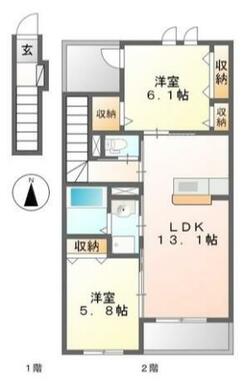 | 間取り | 2LDK(LDK13.1・洋室6.1・洋室5.8) | 主要採光面 | 南 |