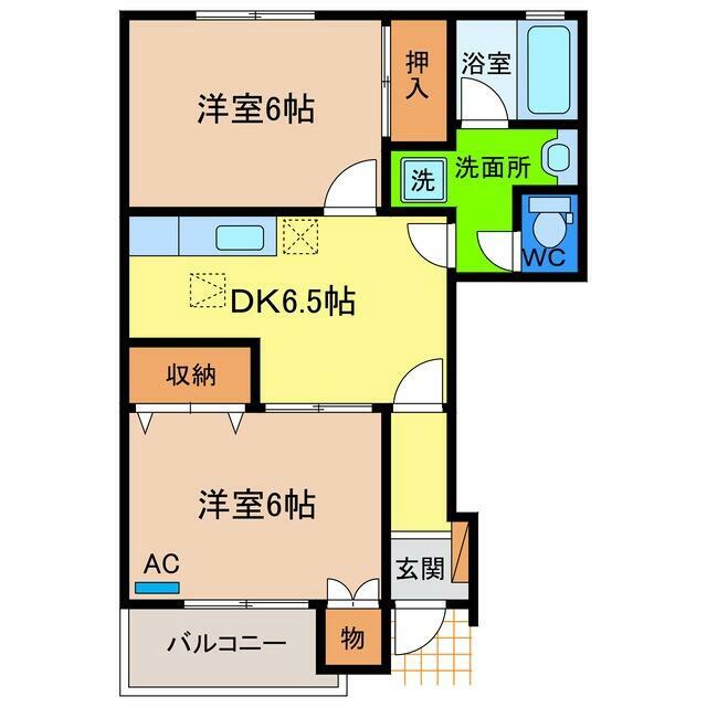| 間取り | 2DK(DK6.5・洋室6・洋室6) | 主要採光面 | 南 |